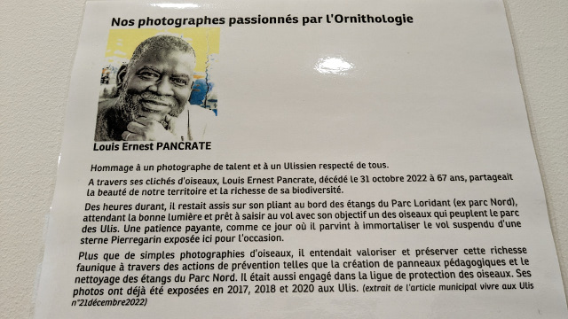 Ces dernières semaines, je suis passée plusieurs fois devant les photographies d'oiseaux à la MJC Jacques Tati à Orsay sans m'attarder. Avant-hier, j'avais un peu de temps devant moi, et j'ai remarqué que j'avais déjà vu certains clichés. [6]